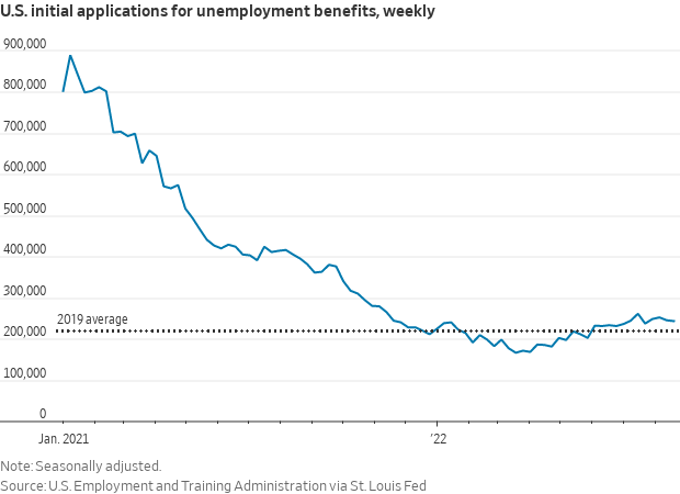 The weekly number has held close to 250,000 since early July after rising from a 50-year low in March.