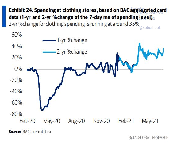 Americans are spending money on clothes. I like the apparel retailers. I am focusing on Gap Stores GPS, Nordstrom JWN and TJX