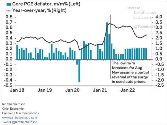 Wall Street is coming around to the view that inflation will indeed be transitory. Used car prices are coming off the boil. The well respected research firm Pantheon believes that core inflation will fall to a rate of 2.5 percent or less.